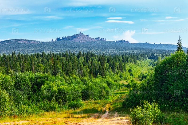 Хвойный лес и горы на урале
