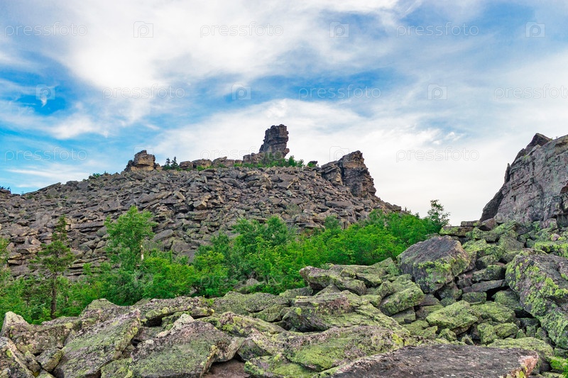 Скалы на вершине горы на урале