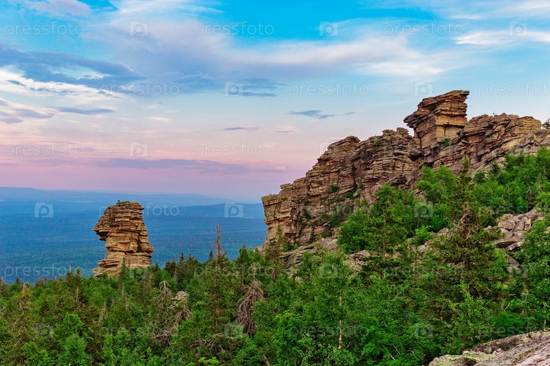 Скалы на вершине горы в русской тайге