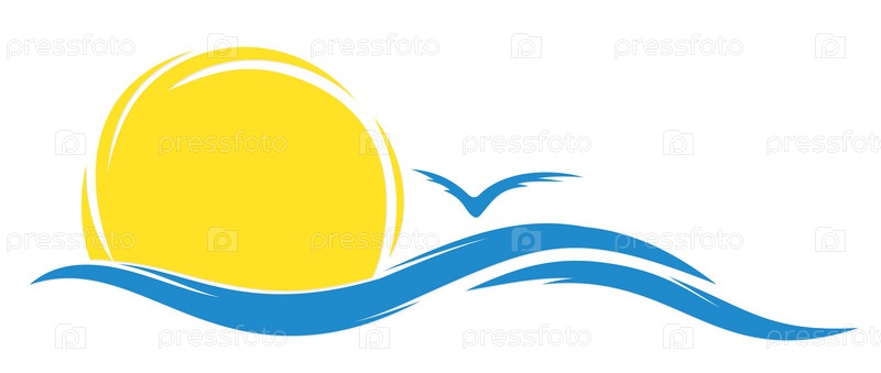 Логотип солнце и море с чайкой