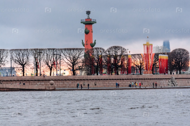 Россия, Санкт-Петербург, июнь 2021 г.: Вид на Стрелку Васильевского острова с Невы
