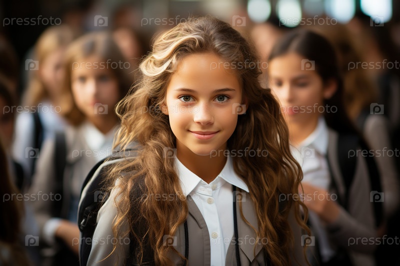 Портрет девочек в школьной форме. Девочки ходят в школу. Генеративный ИИ. Иллюстрация высокого качества