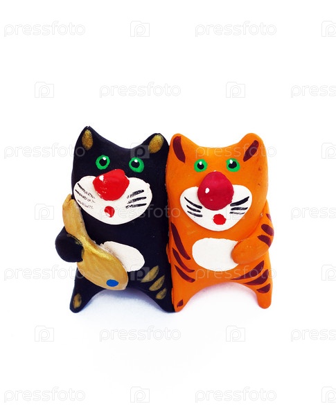 Две статуэтки-кошки на белом фоне
