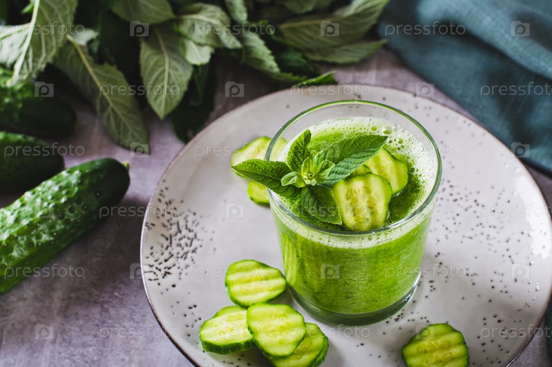 Диетический смузи из огурца и мяты в стакане на завтрак
