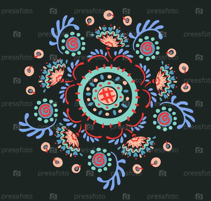 Набор этнических элементов. Бордюр представляет собой полосу с цветами, листьями, ветками, вензелями. Народная вышивка. Славянский, украинский, русский мотив. Хохлома, матрешка, дымковская игрушка. Мексиканский, индийский, цыганский ковер. Вязаное кружево