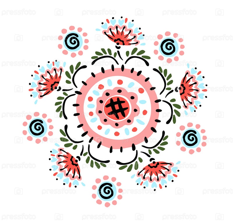 Набор этнических элементов. Бордюр представляет собой полосу с цветами, листьями, ветками, вензелями. Народная вышивка. Славянский, украинский, русский мотив. Хохлома, матрешка, дымковская игрушка. Мексиканский, индийский, цыганский ковер. Вязаное кружево