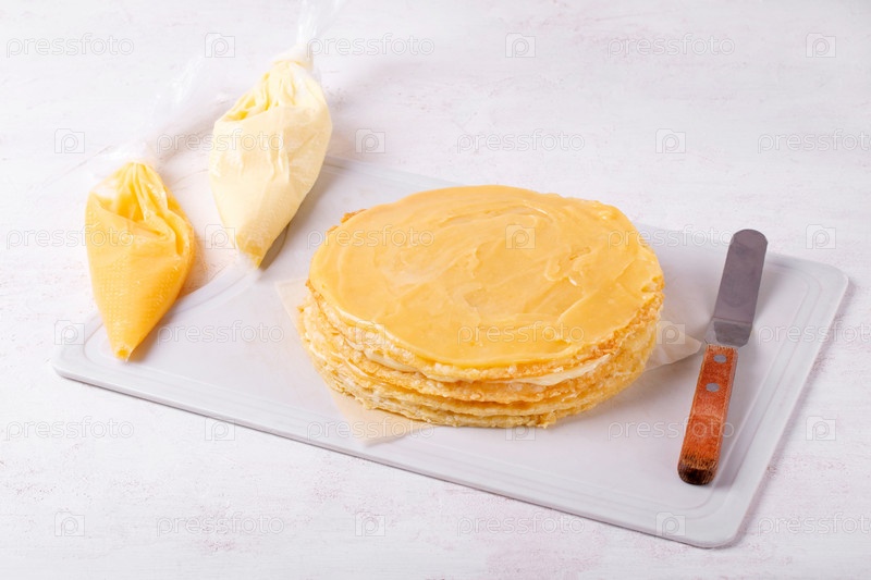 Готовим нарезанный корж с лимонным курдом и масляным кремом. Собираем десерт. Пошаговый рецепт