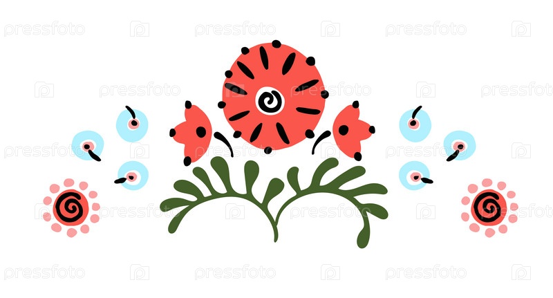 Набор этнических элементов. Бордюр представляет собой полосу с цветами, листьями, ветками, вензелями. Народная вышивка. Славянский, украинский, русский мотив. Хохлома, матрешка, дымковская игрушка. Мексиканский, индийский, цыганский ковер. Вязаное кружево
