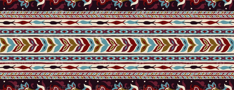 Геометрический фольклорный орнамент икат. Племенная этническая векторная текстура. Бесшовный полосатый узор в стиле ацтеков. Рисунок племенной вышивки. Индийский, скандинавский, цыганский, мексиканский, народный узор