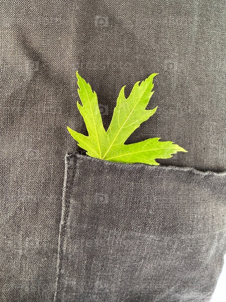 Зеленый кленовый лист лежит в кармане одежды