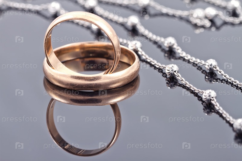 Золотые обручальные кольца и элегантная серебряная цепочка
