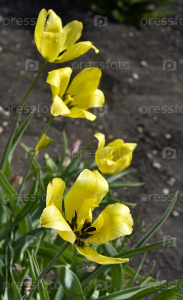Желтые сочные цветы тюльпана во второй половине дня. Крупные цветы тюльпана. Весенний сад. Желтые цветы