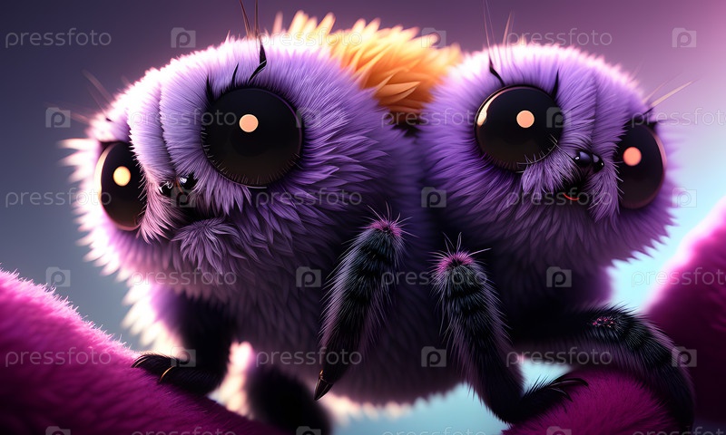 Мохнатый мохнатый шерстяной симпатичный паук, созданный с помощью искусственного интеллекта, генеративного ИИ