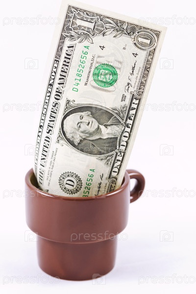 1 доллар в кофейной чашке оставлен в качестве чаевых