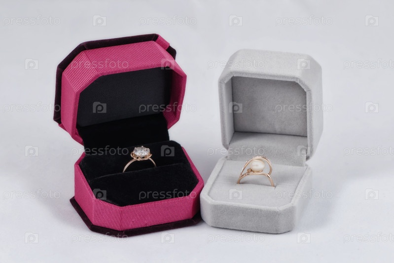 Золотые кольца с жемчугом и драгоценными камнями в подарочной упаковке