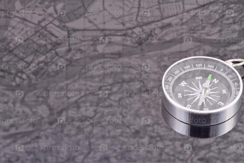 Компас на фоне отражения карты