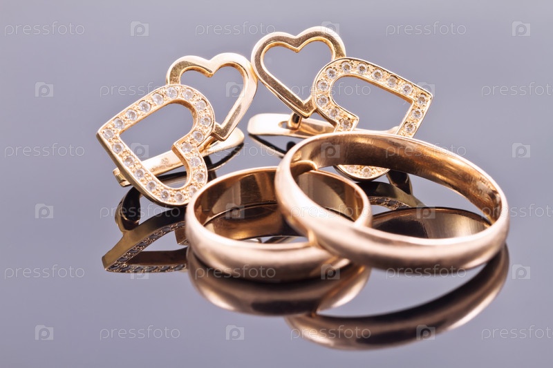 Золотые обручальные кольца и серьги