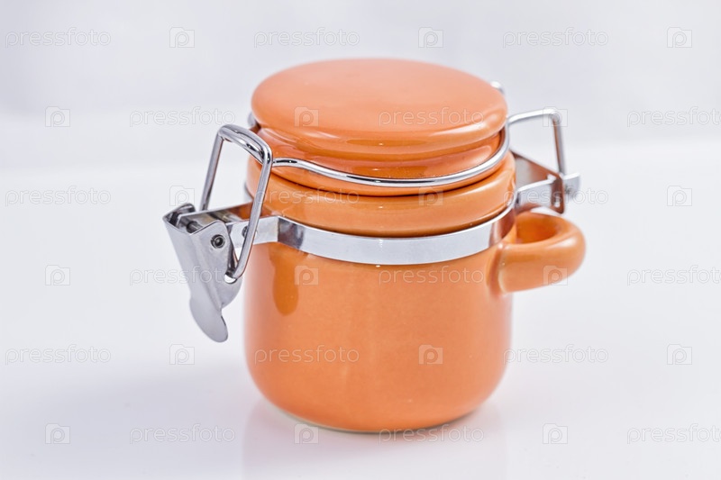 Оранжевая керамическая банка для хранения сыпучих продуктов с клипсой