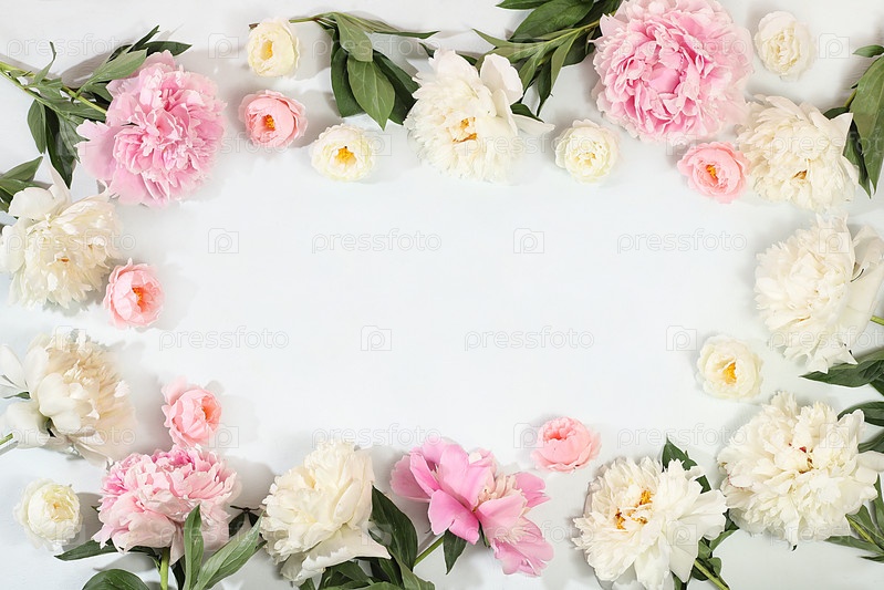 Красивые цветы пиона и розы на светлом фоне, цветочная композиция с местом для текста, летний баннер, поздравительная открытка на свадьбу, день рождения, шаблон для дизайна,