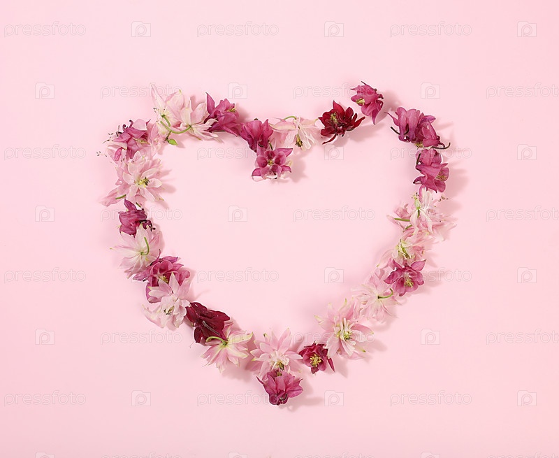 Концепция дня святого валентина или женского дня. Открытка с сердцем из свежих цветов, лепестков, фона, счастливых праздников, элементов для использования в графическом редакторе,
