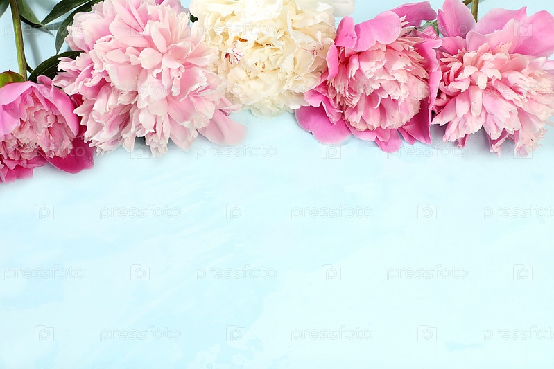 Рамка из красивых цветов пиона на светлом фоне, цветочная композиция с местом для текста, летний баннер, цветочная поздравительная открытка на свадьбу, день рождения, шаблон для дизайна, выборочный фокус