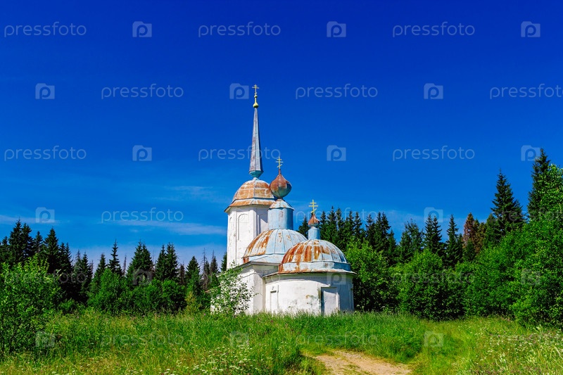 Русская православная церковь в лесу в летний день
