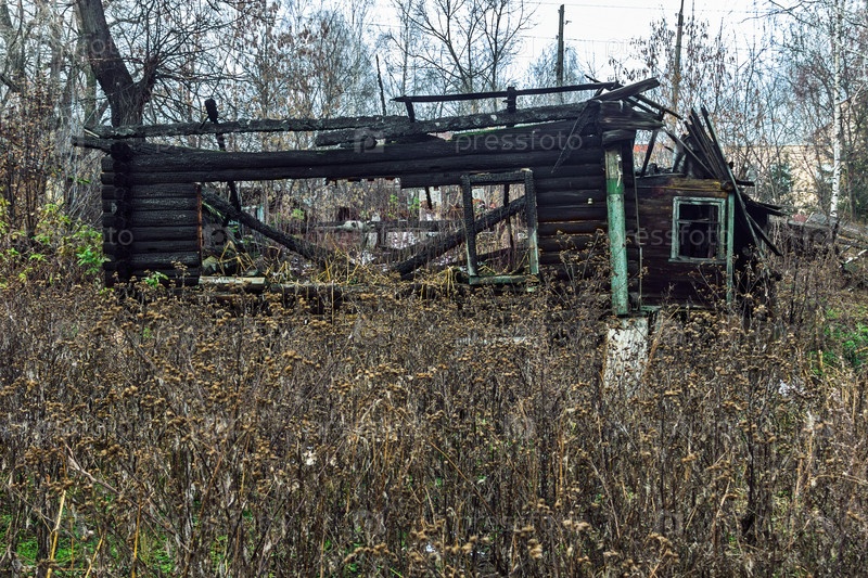 Руины сгоревшего деревянного дома после пожара