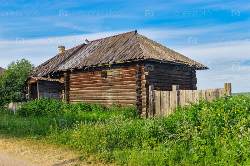 Старый деревянный дом в деревне в летний день