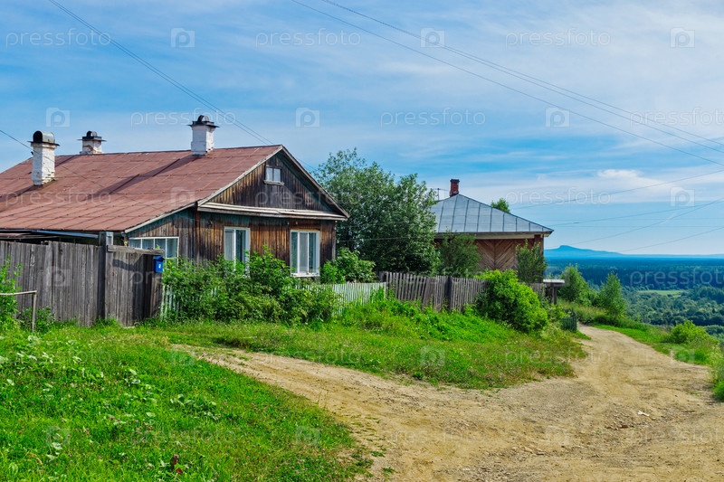 Старый деревянный дом в деревне в летний день