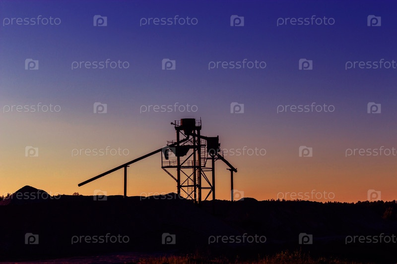 Строительный агрегат возле кучи гравия на закате