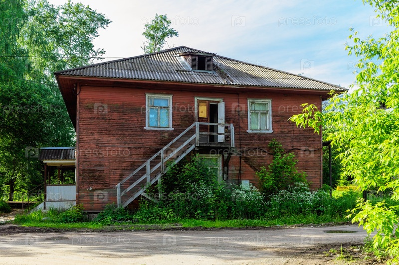 Крыльцо старого деревянного ветхого особняка
