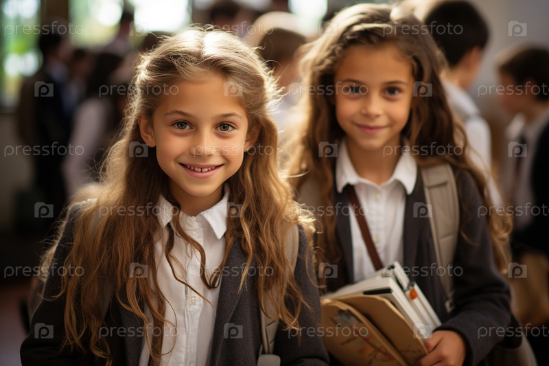 Портрет девочек в школьной форме. Девочки ходят в школу. Генеративный ИИ