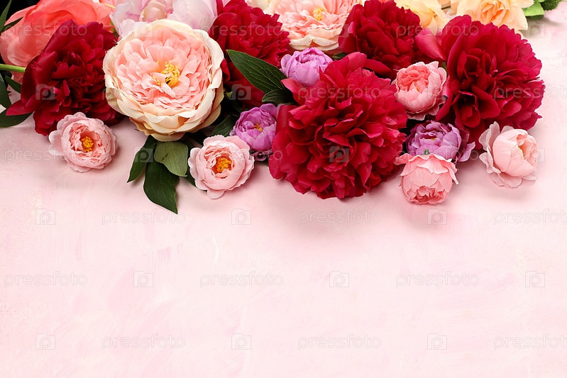 Цветочная композиция с местом для текста, красивые цветы пиона и розы на старом розовом фоне гранж, летний баннер, цветочная поздравительная открытка на свадьбу, день рождения, шаблон для дизайна, выборочный фокус