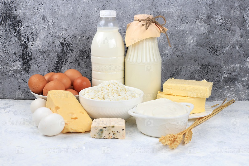 Ассортимент свежих молочных продуктов, здоровый завтрак с ингредиентами, концепция натурального питания, поддержание здоровой микрофлоры кишечника, диетическое питание, деревенский стол, избирательный подход