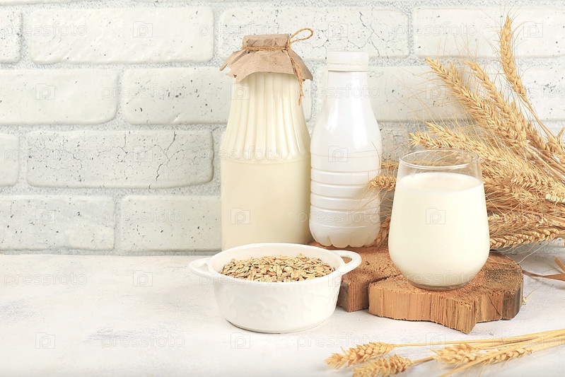 Овсяное веганское альтернативное молоко без лактозы и глютена, без аллергии, концепция здорового питания, поддержание здоровой микрофлоры кишечника, диетическое питание, потеря веса, избирательная направленность