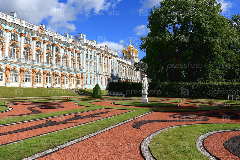 Россия, Санкт-Петербург, 10 июля 2020, Екатерининский парк. На фото Екатерининский дворец в городе Пушкин без людей и туристов в период самоизоляции в связи с пандемией коронавируса