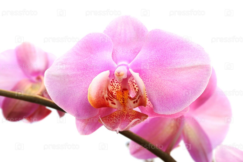 Розовая орхидея на белом фоне крупным планом