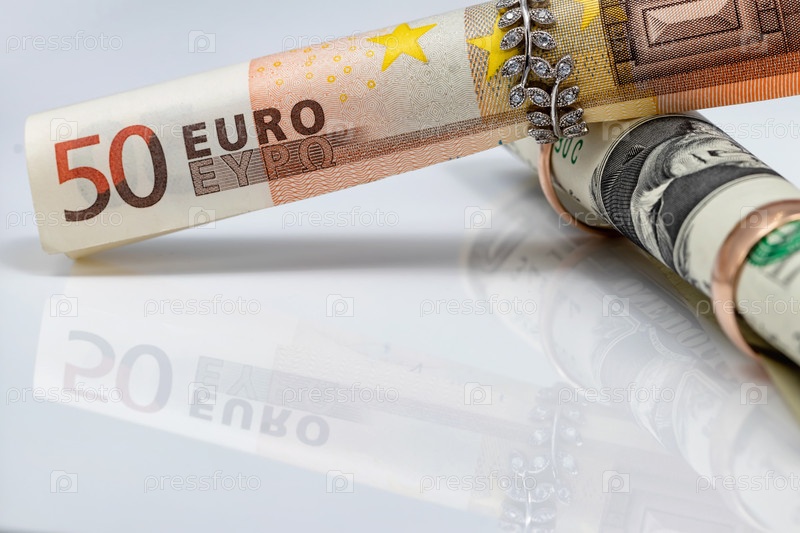 Банкноты в 1 доллар и 50 евро продаются в разных золотых кольцах