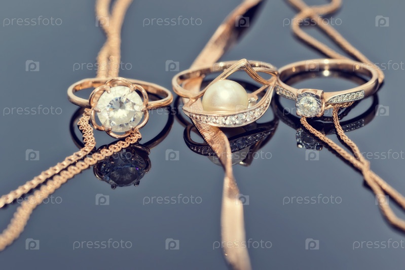 Золотые кольца с бриллиантами, жемчугом и драгоценными камнями