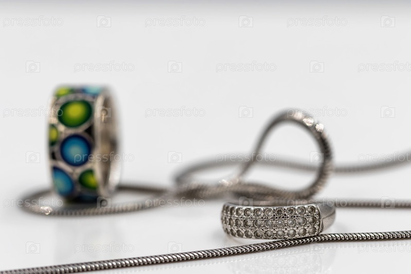 Элегантная серебряная цепочка со змеиным плетением и серебряными кольцами