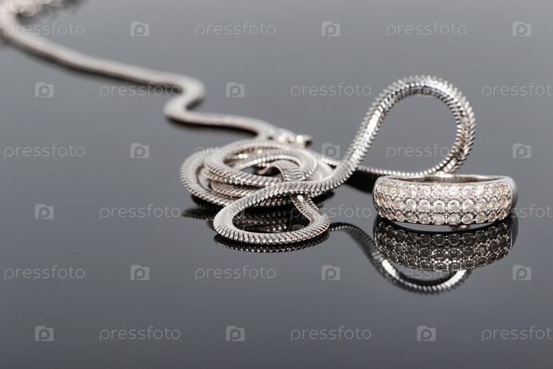 Необычная красивая серебряная цепочка и серебряное кольцо с драгоценными камнями