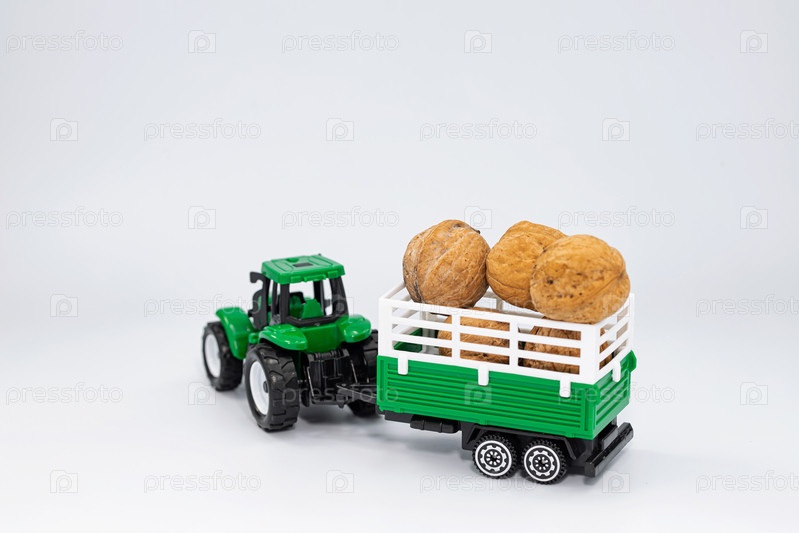 Сбор большого урожая грецких орехов с помощью сельскохозяйственной техники