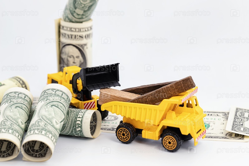 Концепция: добыча и транспортировка древесины приносит прибыль