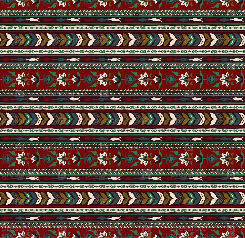 Геометрический фольклорный орнамент икат. Племенная этническая векторная текстура. Бесшовный полосатый узор в стиле ацтеков. Рисунок племенной вышивки. Индийский, скандинавский, цыганский, мексиканский, народный узор