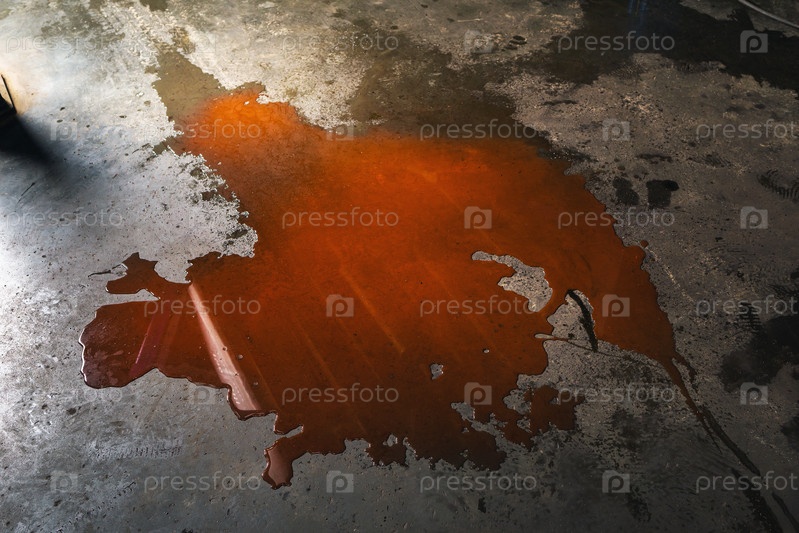 Пол автомастерской залит красным антифризом, напоминающим цвет крови, шаблон для дизайнера