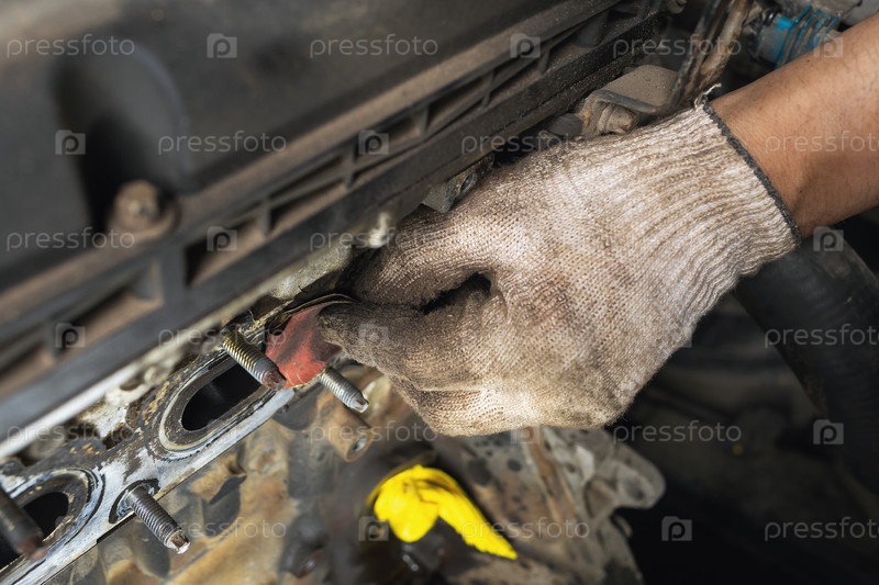Очистка деталей коллектора наждачной бумагой перед установкой новой прокладки, обслуживание автомобиля