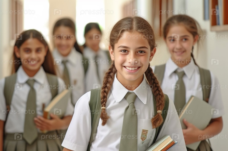 Портрет девочек в школьной форме. Девочки ходят в школу. Генеративный ИИ
