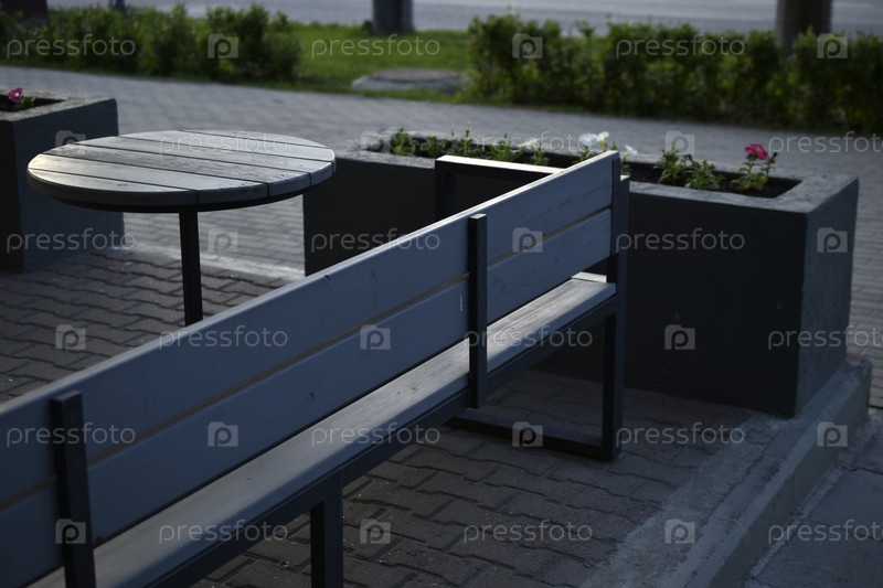 Весенняя беседка в городе. Столик в кафе летом