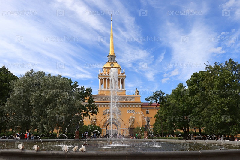 Россия, Санкт-Петербург, 3 июля 2020 г. Здание Главного Адмиралтейства. На фото Адмиралтейство и фонтан перед ним. С 2012 года здесь находится Главное командование ВМФ России