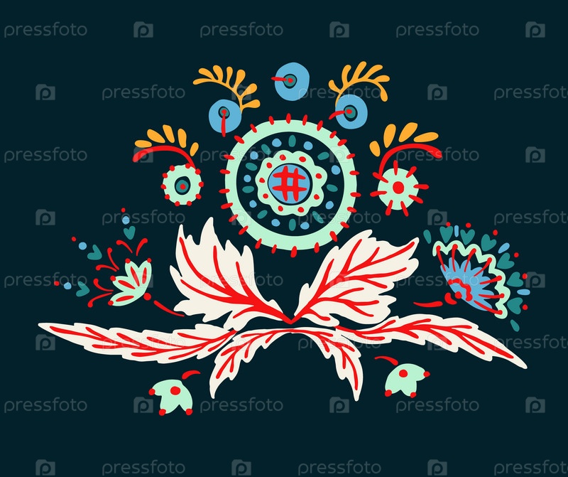Набор этнических элементов. Бордюр представляет собой полосу с цветами, листьями, ветками, вензелями. Народная вышивка. Славянский, украинский, русский мотив. Хохлома, матрешка, дымковская игрушка. Мексиканский, индийский, цыганский ковер. Вязаное кружево
